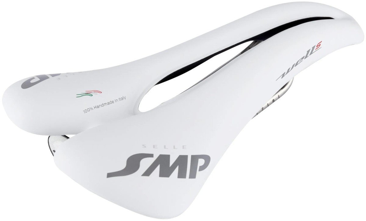 SELLE SMP zadel “Well S” Minimale polstering en gel inlay, L 274 x B 138 mm, race / MTB / ATB / hometrainer / spinning / pendelaar / single speed, unisex Zadelrail van RVS Inox AISI 304, onderschaal van nylon 12 met carbon versterking. Het speciale zelf-modellerende gel-inzetstuk past zich aan de individuele anatomie van de fietser aan en garandeert maximaal comfort. Geschikt voor personen met een smal bekken. Het SMP4BIKE-type design ontlast optimaal gevoelige lichaamsregio’s als deze niet geschikt zijn om het lichaamsgewicht te dragen (stuitbeen, zenuwen, aderen en prostaat, enz.), tevens wo i.› wit